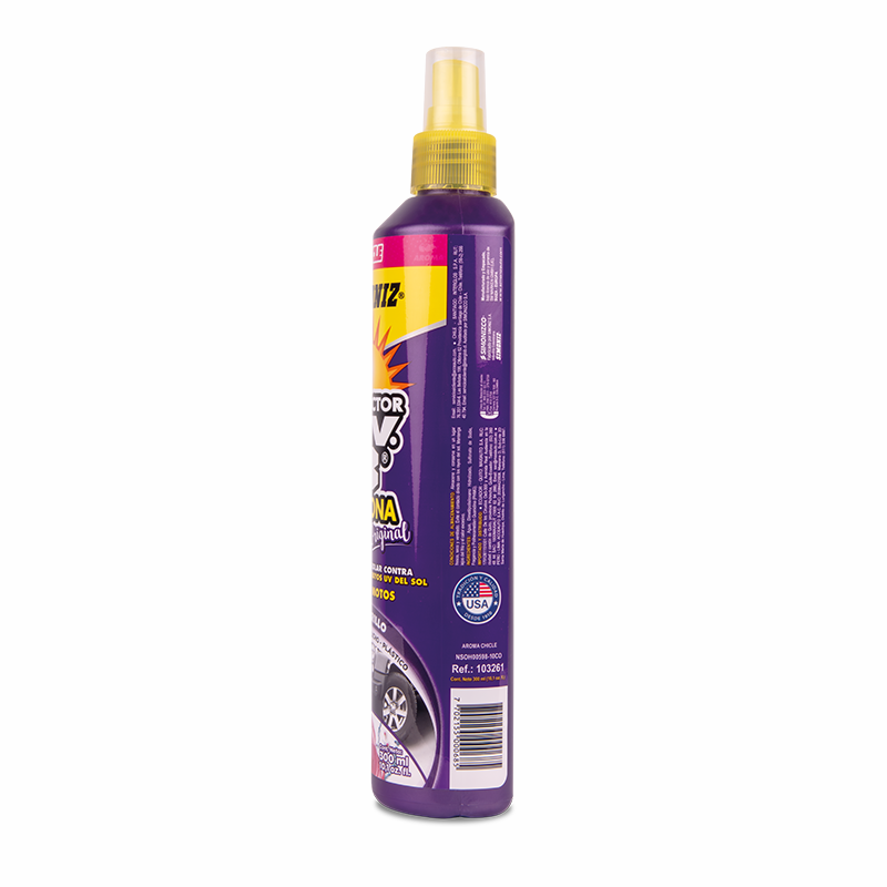 SIMONIZ® PROTECTOR U.V.3® es la única fórmula que mejora la apariencia y previene contra los efectos de los dañinos rayos del sol. Penetra en las superficies de vinilo, caucho, plástico y cuero, proporcionando una poderosa barrera protectora, que revitaliza el color original y da un acabado como nuevo. La barrera protectora de UV3 silicona, protege las superficies de la resequedad, decoloración y agrietamiento.
